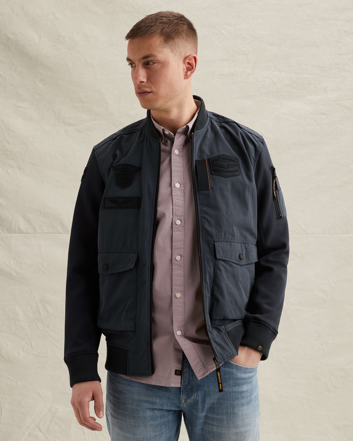 Куртка Hybrid выполнена из смеси хлопка и нейлона и оснащена карманом в авиационном стиле для функциональности.