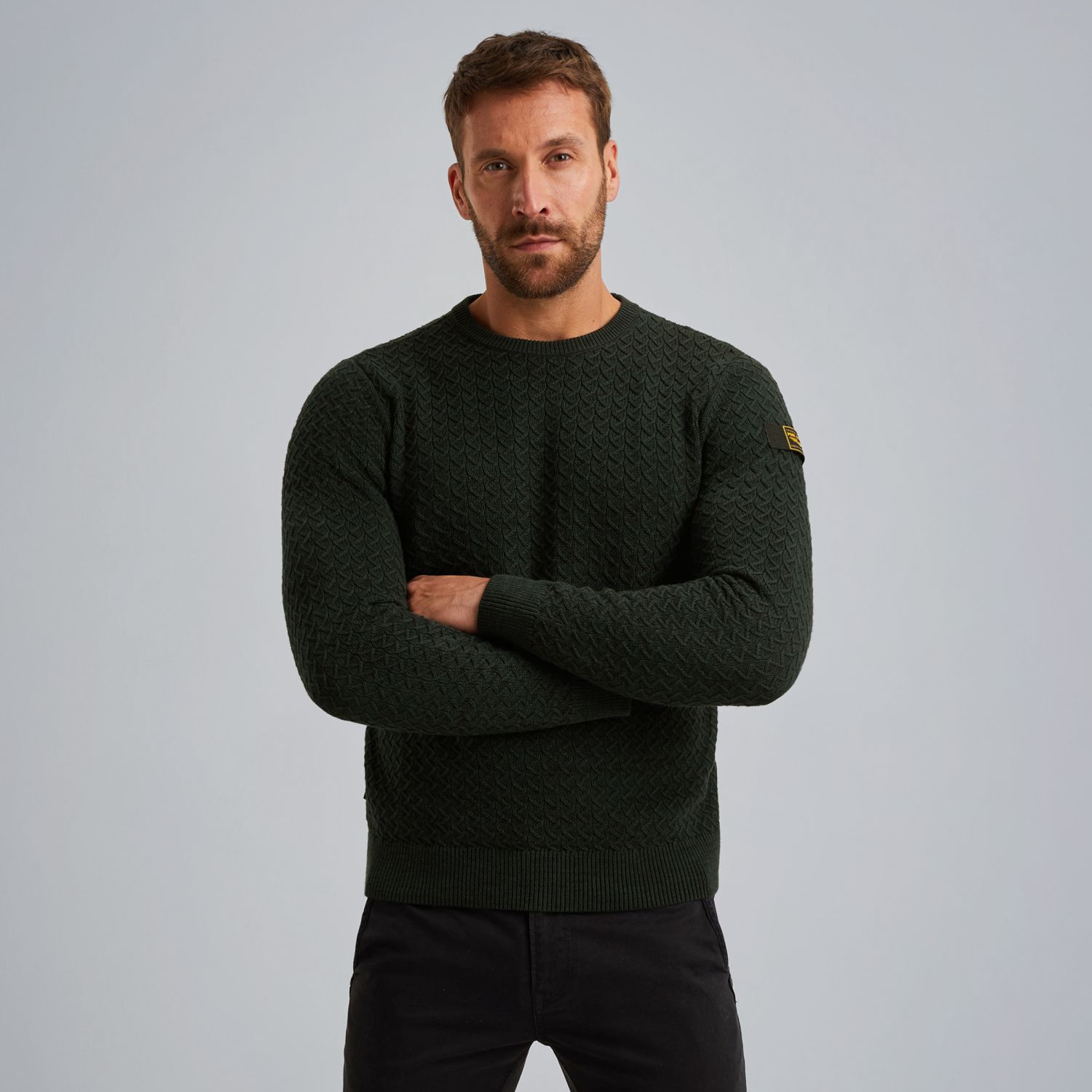 Классический джемпер PME Legend с круглым вырезом и меланжевой текстурой mouliné, выполнен из хлопка и дополнен фирменным шевроном на рукаве для завершённого мужского образа. Уход: не отбеливать, не сушить в сушильной машине, не гладить, химчистка запрещена