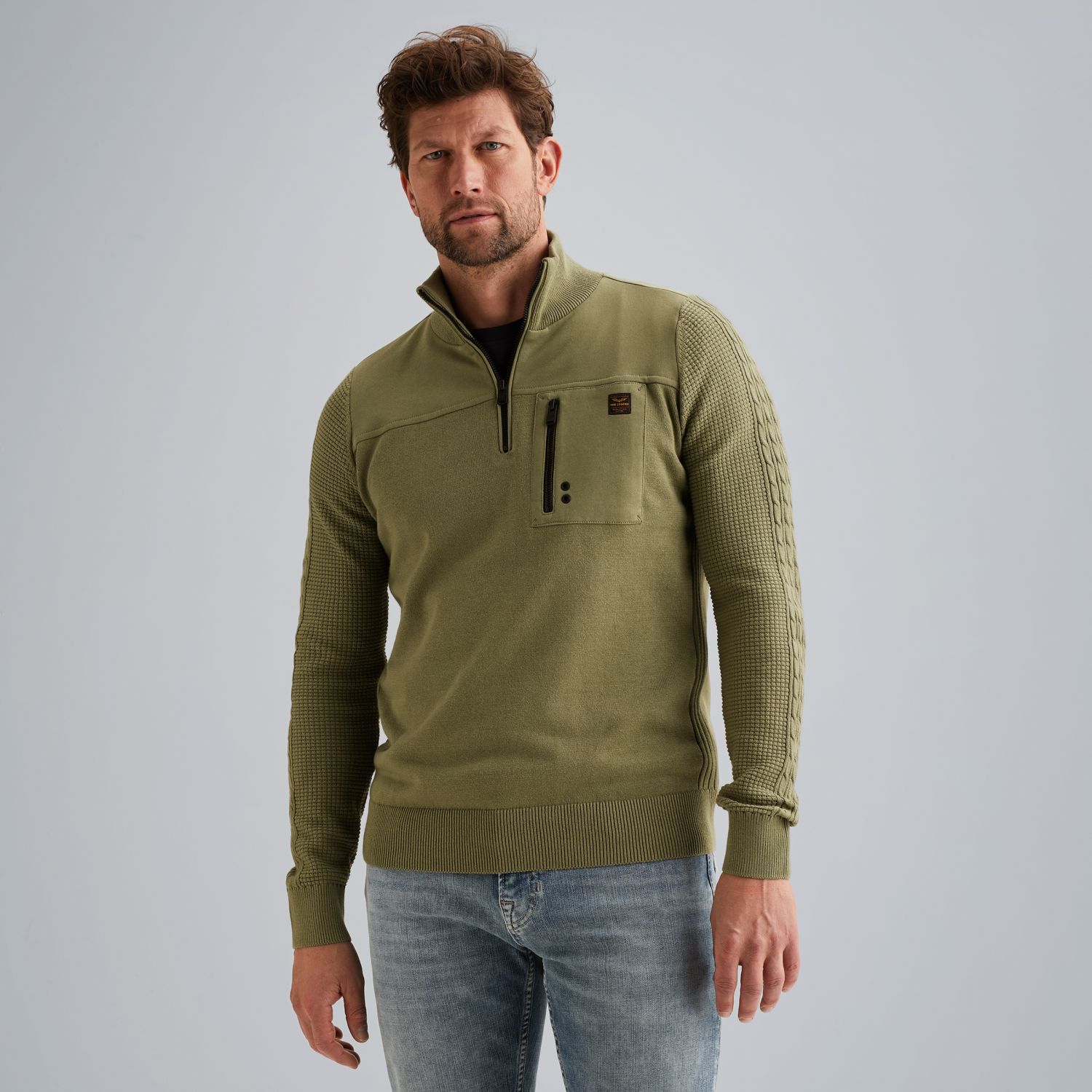 Толстовка из 100% хлопка сочетает тёплый футер и рукава с вязкой «косы», на рукаве нашивка, на груди карман‑карго на молнии, высокий рифлёный воротник с полу-молнией придаёт завершённость. Уход: не отбеливать, не сушить в сушильной машине, не гладить, химчистка запрещена