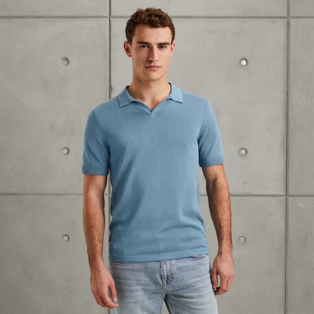 Мужское поло с коротким рукавом Cast Iron из хлопка и модала голубое
