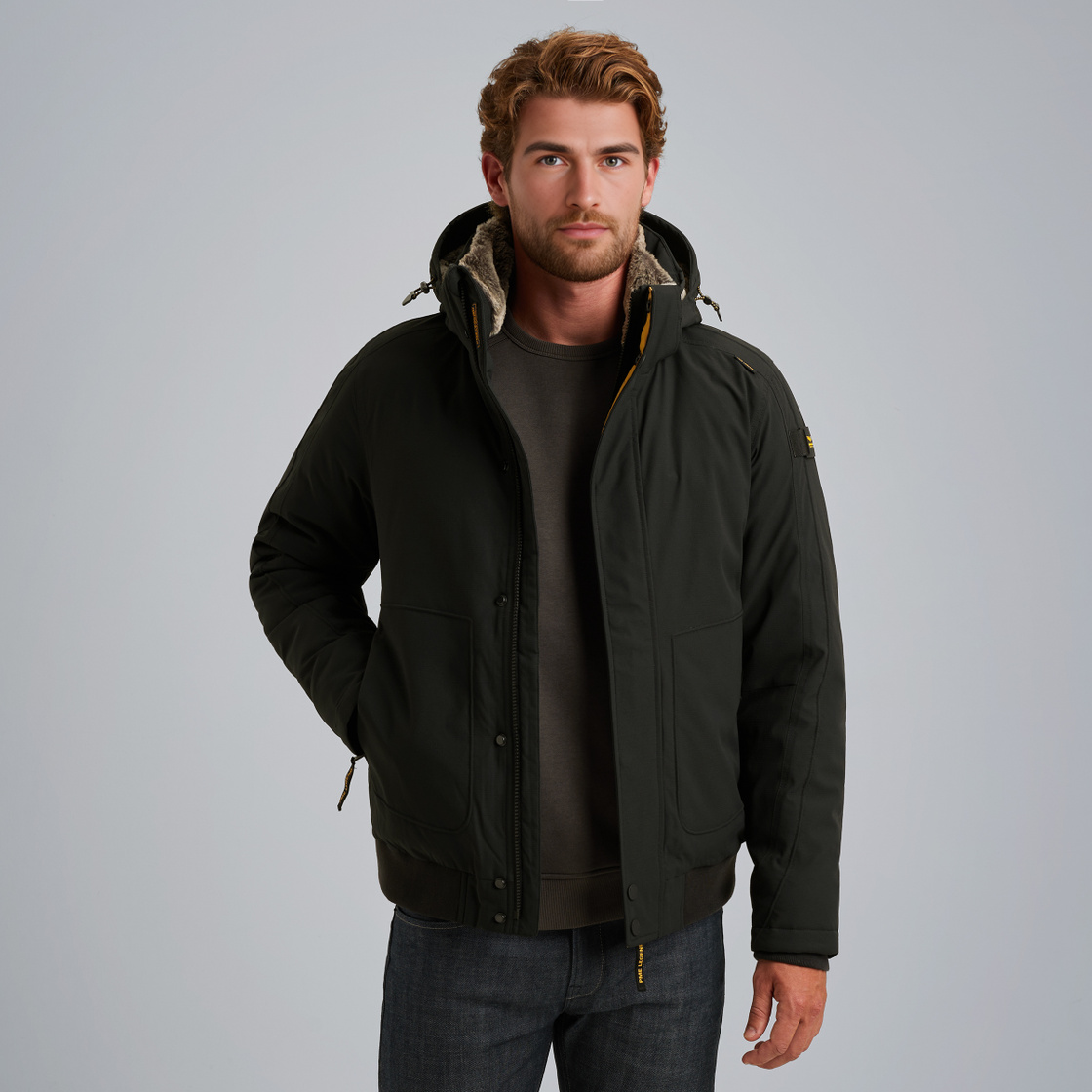- Укороченная длина в стиле flight jacket и комфортный Regular fit